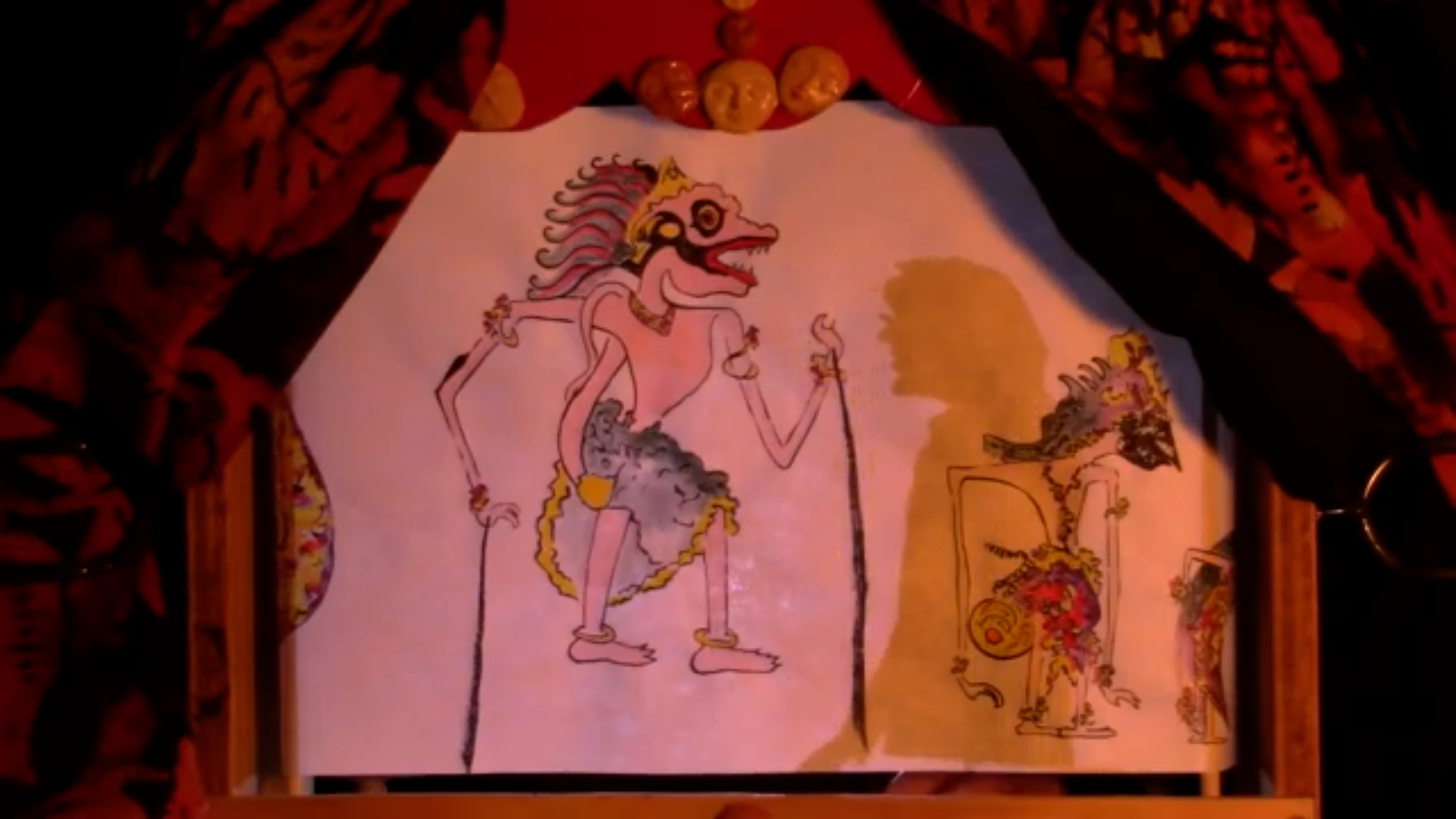 A mini lesson in Indonesian shadow puppetry delivered by the esteemed Dr. Nur, eminent scholar and tabletop puppet well-versed in shadow puppetry.