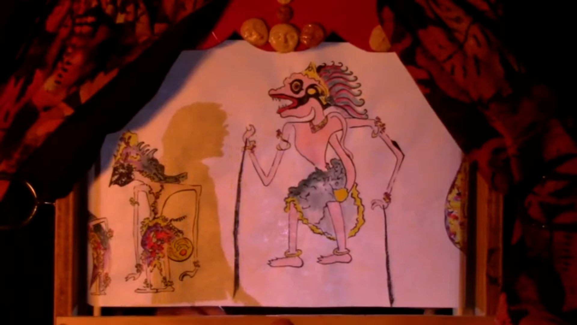 A mini-lesson in Indonesian shadow puppetry delivered by the esteemed Dr. Nur, eminent scholar and tabletop puppet well-versed in shadow puppetry.